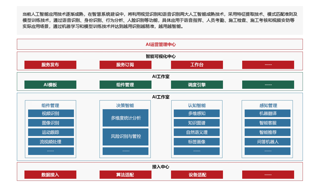 智慧軍營(yíng)物聯(lián)網(wǎng)系統(tǒng),通過(guò)云計(jì)算、大數(shù)據(jù)和人工智能實(shí)現(xiàn)對(duì)軟硬件結(jié)合管理,使傳統(tǒng)軟件快速轉(zhuǎn)化為智能硬件,對(duì)營(yíng)區(qū)內(nèi)進(jìn)行智能提升,實(shí)現(xiàn)一站式托管—高效性、低成本。提升營(yíng)區(qū)智能化,提高營(yíng)區(qū)物聯(lián)網(wǎng)落地能力,數(shù)字整合為營(yíng)區(qū)智能化提供決策。具有高響應(yīng)、高擴(kuò)展性、提供輔助決策分析、硬件統(tǒng)一管理、多協(xié)議適配的特色。